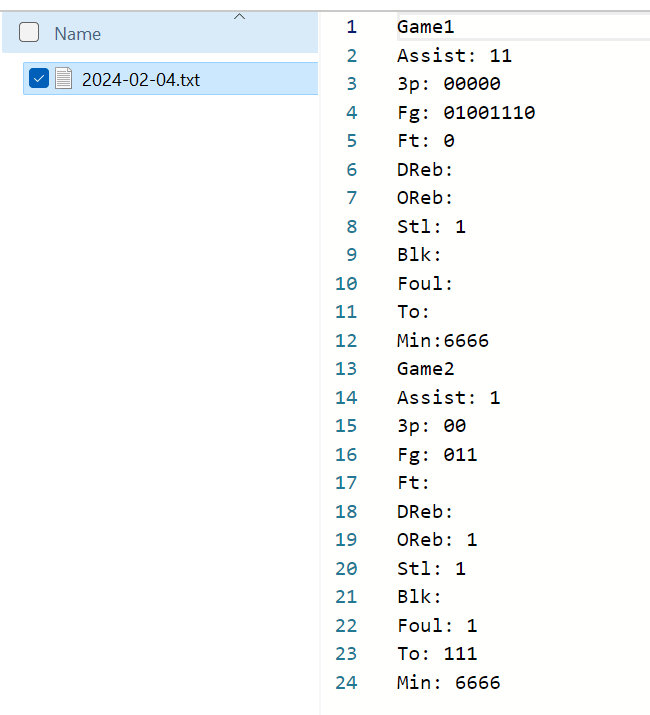 From here I copy the content of the notes ‘Game1’ and ‘Game2’ into notepad in order to save it as text. To my knowledge, there is no “citizen developer method” for connecting to data stored anywhere in Apple’s iCloud. I named the file with todays date. The file looks like this.