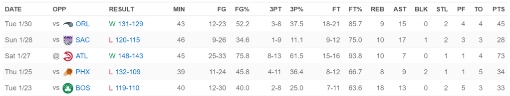 In the first game he totaled: 2 assists, 0/5 from three, 4/8 within the arc, 0/1 from the free-throw line , 0 rebounds, 1 steal, 0 blocks, fouls and turnovers in 24 minutes playing time. In his own words – not his best game to date – but they ended up winning both games. 😊